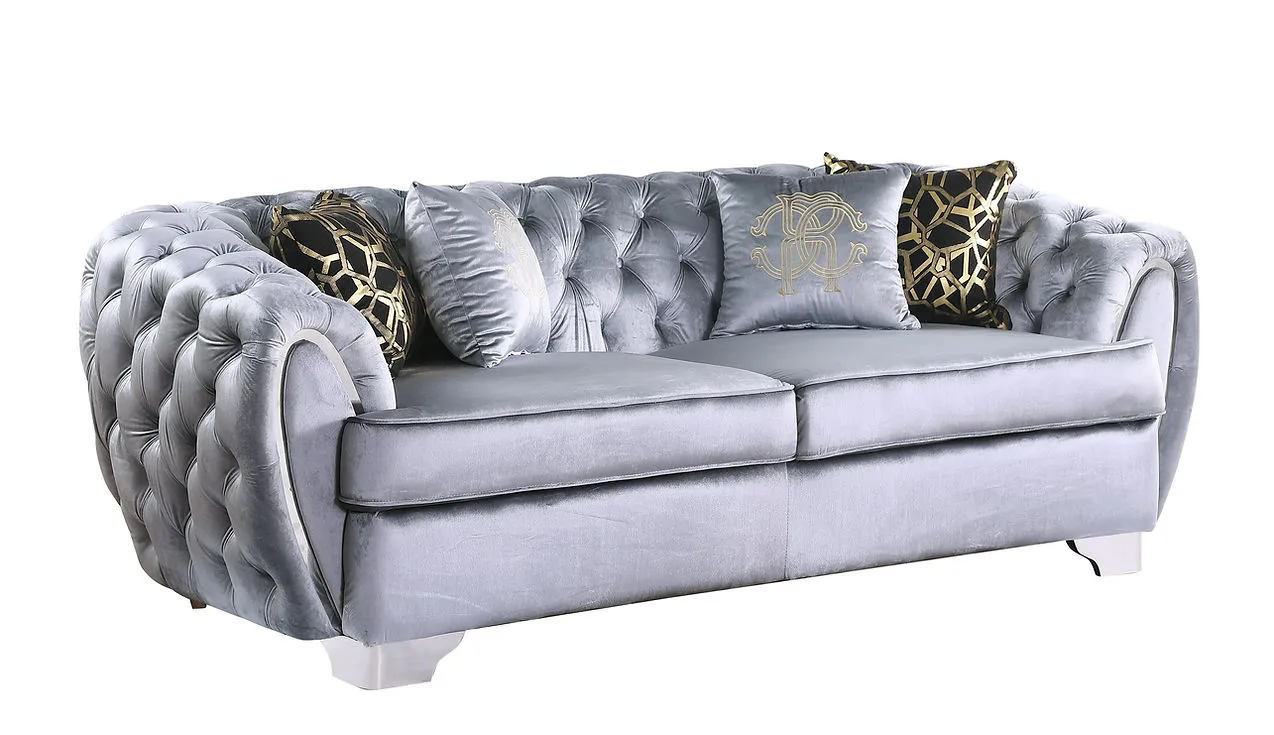 Our Mila Grey velvet sofa Living Room Set is designed to bring sophistication and comfort into your home. Crafted with meticulous attention to detail, this Grey velvet tufted sofa set combines modern aesthetics with luxurious comfort, creating an inviting atmosphere for relaxation and entertainment.