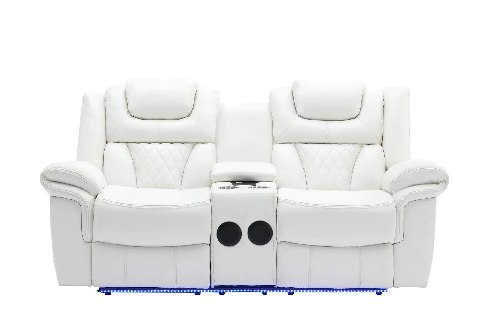 The S2020 Party Time White Power Reclining Living Room Set combines modern design with advanced comfort features. Its power reclining mechanism allows effortless adjustment for personalized relaxation, while the crisp white upholstery adds a clean, contemporary aesthetic to any living space. Crafted for durability and ease of use, this set enhances your living room with both style and functionality, making it ideal for entertaining or unwinding after a long day.5 POWER MOTION